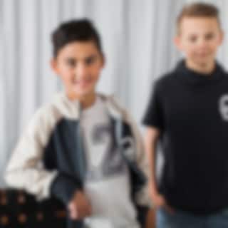 Favoritmunkis nummer ett! Mittenpartiet på tröjan är coolt mörkgrå och ärmarna och luvan är snyggt avvikande i ljusbeige. Dragkedjan är petrolfärgad och matchar jättefint. Hoodie hood är tillverkad i vår mjuka american fleece med elastan, lagom tjock, inte för varm, funkar både inne och ute. Det bästa av allt - stor broderad Friendly scull på bröstet och en superhärlig, lagom stor luva. Jättefin på både killar och tjejer. Tillsammans med Rocker soft jeans eller Rocker pants black blir du busigt supertuff!