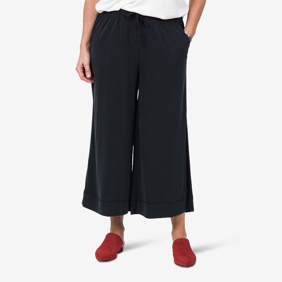 Upeat leveät vajaamittaiset lahkeet viimeistelevät trendikkään ulkonäön! Lahkeiden leveämmät käänteet, vyötärön resori ja puuvillainen kiristysnauha takaavat että housut istuvat täydellisesti.
