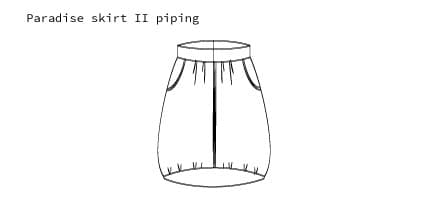 Paradise skirt II piping är gjord i skönt collegetyg. Kjolen har skön följsam resår i midjan samt fickor framtill och en snygg piping i sidsömmarna. Den är lite ballongig med en smal kant nertill. En älva är broderad baktill under linningen. Modellen på första bilden är 172 cm lång och bär storlek S.