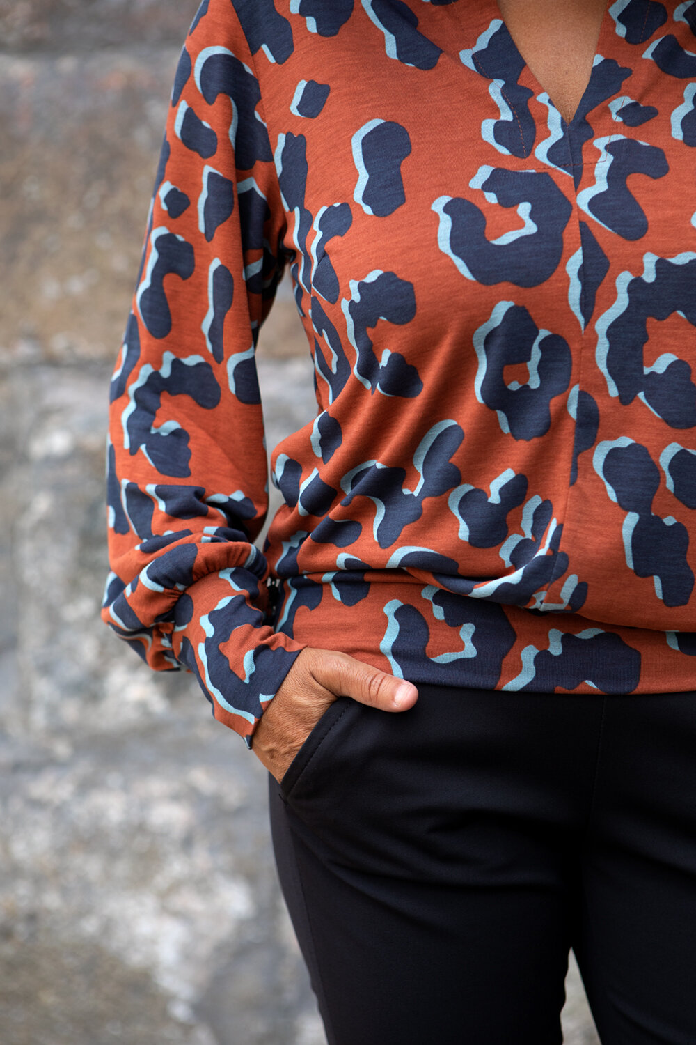 Botany top är en långärmad topp i mjuk modaljersey med matt sammetslen yta. Den är rundhalsad med ett spund framtill. Den har en bred mudd i ärmslut och i nederkant av toppen vilket gör att den blusar sig fint. En berlock sitter i ena sidsömmen.