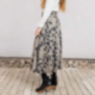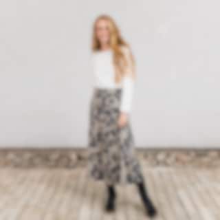 Bella skirt on pitkä upeasti laskeutuva hame. Hameessa on kolme röyhelökerrosta ja mukavan leveä vyötärökaitale. Keiju on brodeerattu vasemmalle lanteelle juuri vyötärökaitaleen alapuolelle.