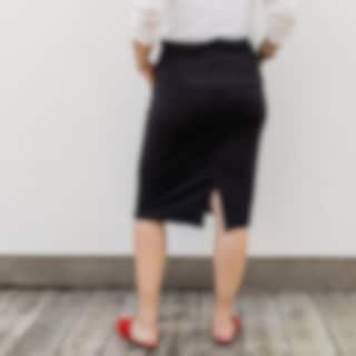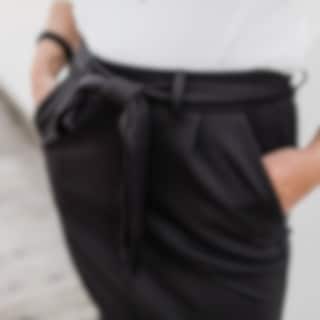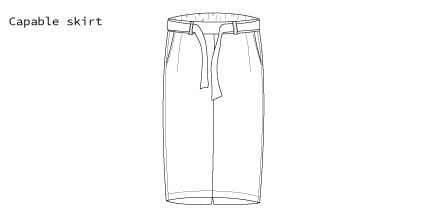 Polvimittainen, suora, vyölenkeillä varustettu hame, jossa solmittava vyö lanteilla. Takana keskellä halkio ja edessä taskut. Materiaali on aavistuksen paksumpaa jersey-kangasta, joka on todella ihanan pehmeä ja joustava. Hametta voi käyttää ylempänä vyötäröllä, tai alempana lanteilla. Brodeerattu keiju löytyy Vyötärön alapuolelta takaosasta. 85% viskoosi, 12% polyesteri, 3% elastaani Kuvan malli on 161 cm pitkä ja hänellä on koko XS.