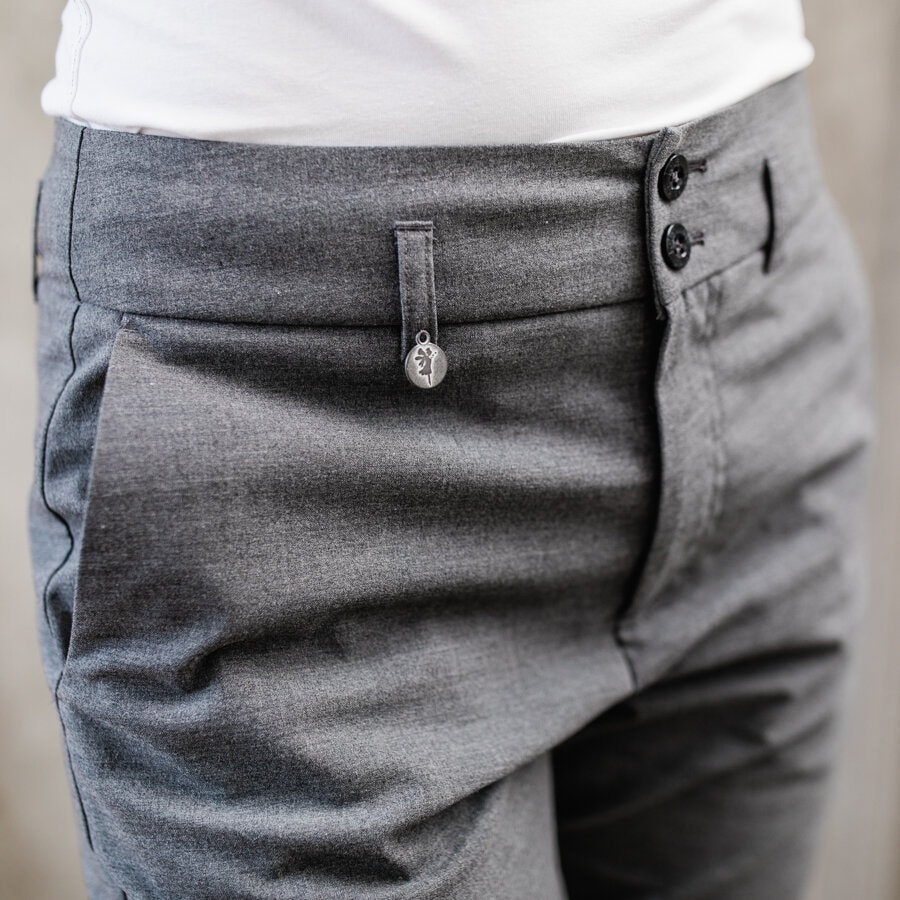 Geezer pants housut ovat neulotusta kankaasta valmistetut ”pyhähousut”. Housuissa on normaali vyötärö ja ne on toteutettu väljän mallisiksi. Housuissa on vyölenkit, sepalus, etutaskut ja valetaskut takana. Keiju-riipus on etuosassa olevassa vyölenkissä. Kuvan malli on 175 cm pitkä ja hänellä on koko S.